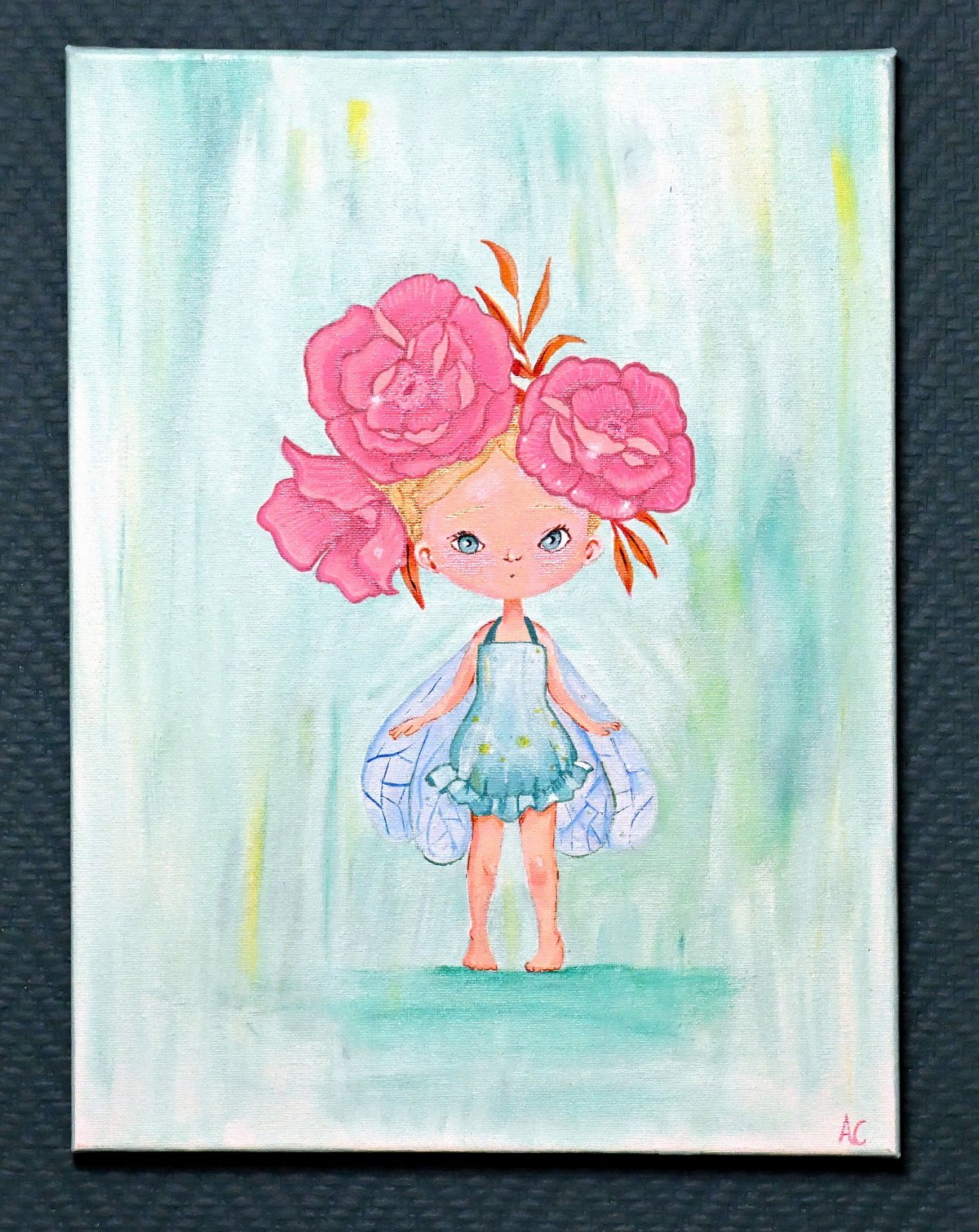 Toutes les peintures sont sur toiles, en acrylique, avec parfois des effets de brillances et paillettes,