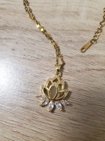 Symbole universel de pureté et d’éveil, la fleur de lotus représente la capacité à s’élever au-dessus des épreuves pour révéler sa lumière intérieure. Ce collier doré Fleur de Lotus est un bijou à la fois élégant et porteur de sens, idéal pour accompagner un cheminement personnel, spirituel ou simplement apporter une touche raffinée à votre tenue.